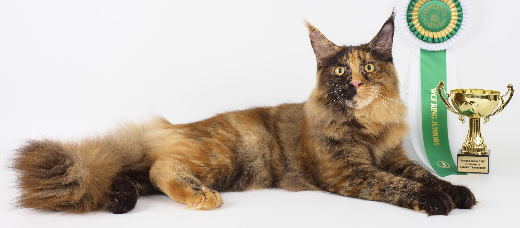 In our nursery, we try to grow a beautiful, powerful, Maine Coon with excellent type and temperament. Our cats are very sociable, well get on with children and other animals. We like the extreme type: with a long box of clear-cut, big ears with tufts, long strong body, strong legs and a long bushy tail. This is the type that we would like to bring in our nursery Maine Coon Caramel, and we will do everything in our power to Coon’s dream became a reality.
