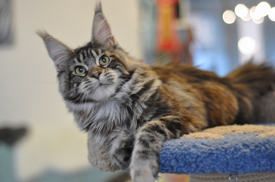 Caramel's Tajna. Was born on April 12, 2017. Female Maine Coon, tortoise silver tabby blotched (f 22), Hsm-nn