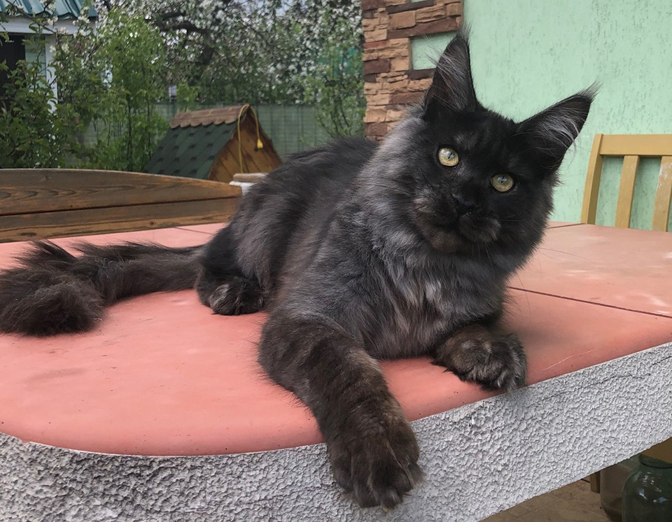 Caramel's Hugo Boss, огромный , крепкий, с изумительным характером котенок мейн кун черного дымного окраса. Родился 8 декабря 2019 года. Босс очень крупный и правильный кот, с шикарной шубкой и длинным хвостом. Босс нежный великан, тяжелый и сладкий мурчун. Невероятно красив и умен. Котенок кастрирован, вакцинирован, нашел свой дом в Одинцово. Тесты на кардиомиопатию родителей - отрицательны (hcm-nn).