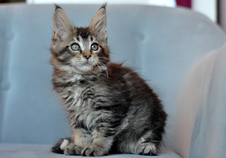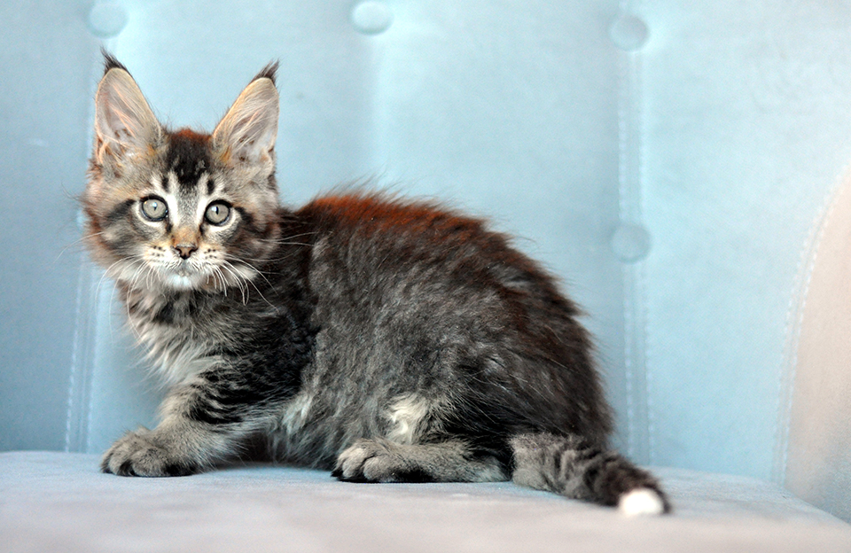 Caramel's Zac, черный тикированный котенок мейн кун с забавной белой кисточкой на хвостике! (n 25 09). Родился мальчик 27 июня 2024 года. Мальчик яркий, добрый, умный и очень красивый. растет крупным и эффектным мейн куном, ручным и мурчащим! уехал в Москву :)